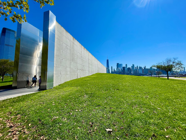 The old train depot anchors the park and the paths stretch along the river. When I was there, they were filled with bikers and runners on a perfect day! A key feature of the park now is the Empty Sky Memorial. The memorial honors the 749 NJ residents who were killed on 9/11. The two walls are placed opposite where the towers once stood across the river. A truly touching memorial in a peaceful place!